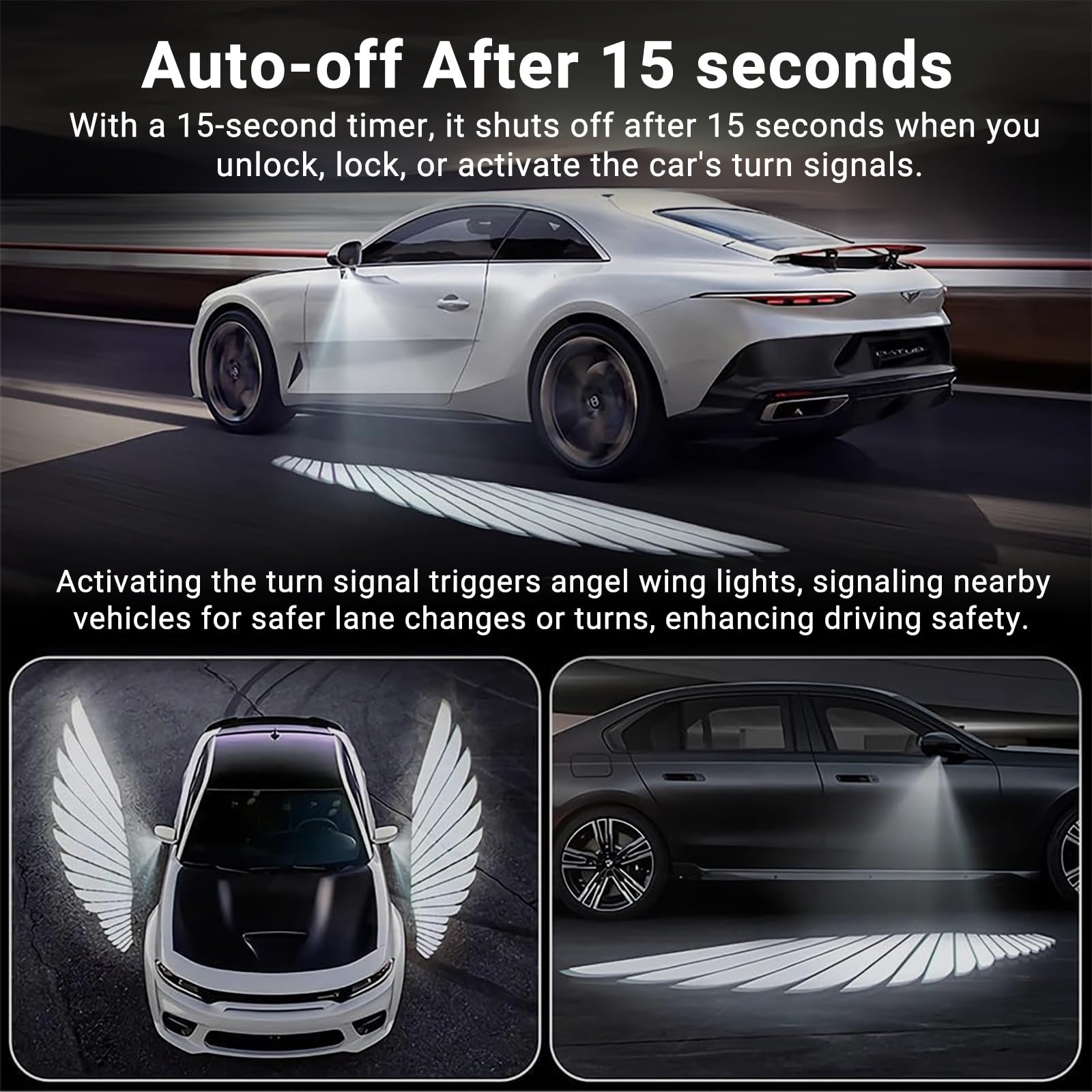 - Compatibilidad universal: diseñadas para ser compatibles con una amplia gama de vehículos, las luces de proyector universales LED Angel Wing Door son adecuadas para la mayoría de los modelos de automóviles y agregan un toque lujoso a cualquier vehículo.
